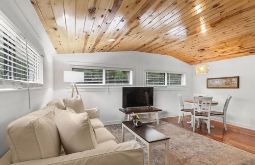 The Back Bay Cottage is a private cottage that is perfect for relaxing in an updated cottage. The spacious bedroom has a king size bed and great television to watch TV after a long day exploring the area or shopping downtown. The sofa pulls out into a queen bed making very comfortable for an additional 2 guest can call home for an evening or few. Enjoy the large entertaining style kitchen or the shower tub/combo.