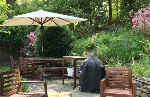 Great for a family vacation or a weekend get-away with friends, the "Cottage at Taughannock" shares a border with Taughannock State Park for extraordinary hiking, boating and swimming. Enjoy the lovely rhododendron garden flowers & birds. Play outdoor yard games & indoor board games. Study or work at desks in several bedrooms. Internet speed is 83 Mbps. Prepare meals & dine in the cottage “garden room” or grill & dine on the adjacent patio. At night, watch the stars, the fireflies, & build a fire in the patio fire pit. Sleep well on comfortable beds.