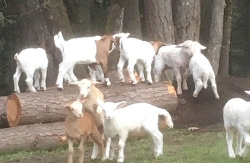 The just completed cabin, with a private lane and parking, includes a walk-up king bed loft and a queen futon loft accessed by ladder. Be advised that the sleeping areas are not walled off from each other. The 600 sq. ft. cabin was built almost entirely from wood harvested, milled and finished on the property. The kitchen has a two-burner gas stove, a small fridge, dining table and a double sink with hot and cold water. Bathroom includes a hot shower, a sink and a composting toilet (don't be intimidated--easy to use). The living room is furnished with a small couch, a Scandinavian recliner, several small chairs and a closet. There is a large deck off of the kitchen if you want to commune with the goats. The bedroom and living room have views to the Cascades. No internet service in the cabin but internet and laundry are available at the main house (just up the hill) as needed. We are 15 minutes from the University of Oregon and Hayward Field and will be attending the Olympic Trials. This is a working farm with sheep, goats, chickens, garden and two friendly dogs. The setting may not be right for everyone, but it will be a great experience for someone.