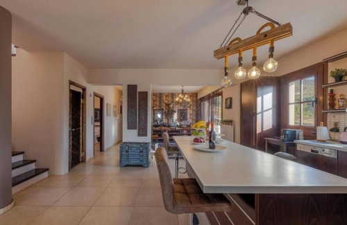 Located in Kos, the country house Casa Natura offers guests a fantastic view of the Aegean Sea. The 250 m² property consists of a living room with a sofa bed for one person, a fully-equipped kitchen, 2 bedrooms and 2 bathrooms and can therefore accommodate 6 people. Additional amenities include high-speed Wi-Fi (suitable for video calls) with a dedicated workspace for home office, a smart TV with streaming services, air conditioning, a washing machine, a dryer, a game console as well as beach/pool towels. Furthermore, a pool table and gym equipment are available on the property. A baby cot is also available. This charming country house features a private outdoor space with a whirlpool, garden, open terrace, covered terrace, 3 balconies, and a barbecue, offering a perfect retreat for relaxation and al fresco dining.