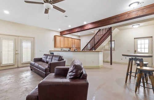 With our ranch style home on top of a hill, the house is placed in a lovely countryside feel. It has a large backyard with plenty of patio area that overlooks 100 acres of natural splendour. It's ideal for corporate retreats, wedding festivities, pre-honeymoon stays, or relaxing weekend vacations with friends and family. We're conveniently located near your favourite Plano/Frisco businesses and restaurants, with easy access via Highway 380, DNT, and Preston Road.