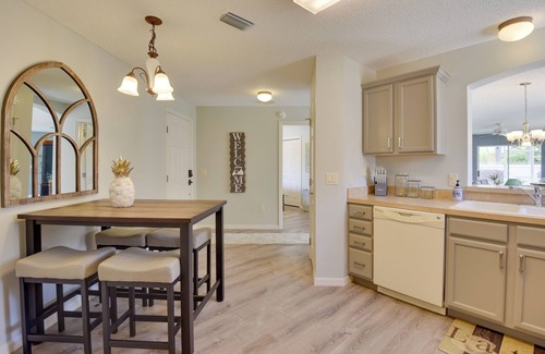 A tropical oasis of Florida fun awaits you at this calming villa in the heart of The Villages. Nestled in the village of Bonita, this 2-bedroom, 2-bathroom vacation rental features a welcoming living space, fully equipped kitchen, and screened-in lanai perfect for reading in the shade or enjoying morning coffee in the Florida breeze. Cool off in the community pool, work out in the fitness center, or drive less than 5 miles to Lake Sumter Landing and Brownwood Paddock Square for local adventure!