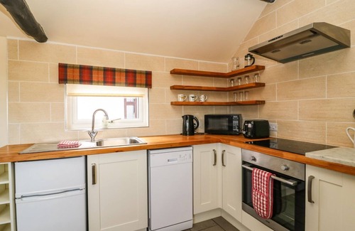 Amenities: Biomass central heating. Electric oven and hob, dishwasher, microwave and fridge/freezer. TV with Freeview, and WiFi. Fuel and power inc. in rent. Bed linen and towels inc. in rent. Off-road parking. Enclosed patio with seating. Two well-behaved dogs welcome. Sorry, no smoking. Shop 2.9 miles, pub 1.1 mile. Note: The bedroom is not an enclosed room.