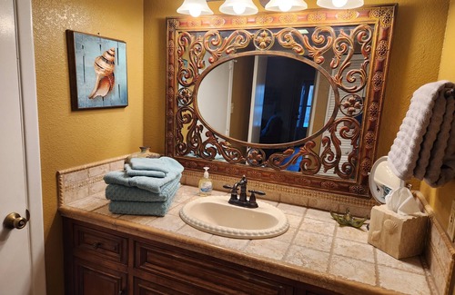 This Lake Havasu City condo boasts 1 inviting bedroom. Step into this peaceful retreat with terrific amenities like a cozy living room with a sofa bed, perfect for unwinding after a day of exploring. Guests will find everything they need, from a hairdryer to a washing machine, ensuring a stress-free stay. Escape to this enchanting getaway and create unforgettable memories. Walking distance to the beach and lake.Dont forget to take in a movie or dine out at restraunts. Aprox 5 minute walk from condo.our condo is ground level with patio and easy aexcess. Sleeps 4 guests.We have 1 king bed with very nice pillow top.1 queen sofa bed and 1 twin blowup mattress with automatic inflator.New beautiful walk in shower. 2 confortable recliners. Beautiful heated pool and spa.No staircasesto climb to get into condo. Great location for a relaxing stay.