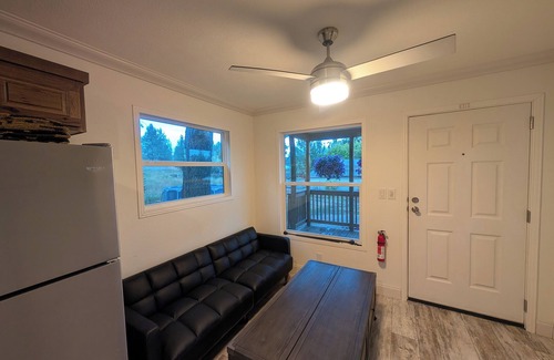 Welcome to your forest-fringed retreat in peaceful Chattaroy, Washington—just 15 minutes north of Spokane and only 7 minutes from the shores of Bear Lake. This thoughtfully designed 1-bedroom tiny home blends cozy comfort with modern convenience. Whether you're here to hike Mt. Spokane, soak in nature, or simply relax under the trees, you'll find everything you need to feel at home. Nestled on a quiet, heavily treed 1-acre lot, this home is one of two private tiny houses thoughtfully spaced for privacy, each with its own parking, porch, and peaceful view. You'll find a private bedroom with a comfortable full-size bed, and a living area with a sofa futon for extra guests. Quality linens and a tranquil setting ensure restful nights. The full kitchen includes a stove, oven, fridge, microwave, dishwasher, coffee maker, cookware, and dining essentials. Heating and air conditioning provide comfort in every season, and the in-unit washer and dryer make extended stays easy. Super Fast Fiber-optic Wi-Fi and a smart TV are perfect for streaming or remote work. Outside, enjoy a private porch for morning coffee or evening stargazing in your private Hot-tub. On-site parking and quick access to Highway 2 make travel easy. Nearby adventures include Bear Lake just 7 minutes away for swimming and kayaking, the Day Mount Spokane Trailhead 10 miles out for hiking, and the Mt. Spokane Ski Park just 30 minutes away. You're also just 33 minutes from Spokane International Airport and 122 miles from the Canadian border. The property is tucked between a quiet residential development and the local fire station, with a horse farm across the road. It offers a peaceful, rural atmosphere with convenient access to nature and city amenities. We’re just a message away during your stay and happy to help with local tips or anything you need. Book your stay today and enjoy a uniquely serene experience in the woods—perfect for couples & solo travelers looking to relax, explore, and recharge.