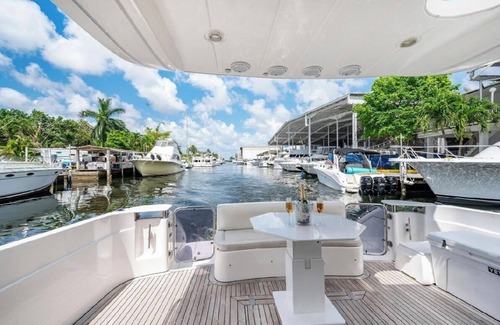This gorgeous yacht offers a pleasant 2-6 hour charter for up to 13 guests with its 2 twin bed bedrooms. Enjoy the beautiful views of the city with the convenience of WiFi and AC. With its prime location, you can easily explore all that Miami has to offer. Whether you're looking to relax on the second floor sun deck, on the rear deck, or in the front, our yacht is the perfect choice for a great experience. Enjoy all that Miami has to offer when you book a boat for a good time. Feel free to ask any questions as we are super accommodating and excited to work with you. Come celebrate a birthday party, a nice 2 hour dinner, swim in the ocean, or even drive around Miami’s beautiful millionaire mansions.