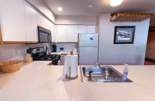 This 2-bedroom, 2-bathroom condo at Winterplace P302 offers the perfect location for your ideal Vermont ski trip. Entering the unit you are welcomed by a mudroom to store everything you may want to keep out of the way like luggage and ski gear.