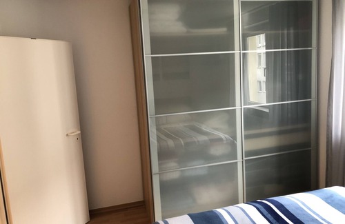 You can expect a cozy 2-room apartment. It is fully equipped with everything that is needed. The kitchen is equipped with a hotplate, microwave, refrigerator, coffee maker, kettle, washing machine and utensils for cooking. The bathroom has a bathtub. Bedroom is aligned with box spring bed and wardrobe. The living room offers a large sofa bed, chest of drawers and dining area. The apartment is provided with free WiFi. The balcony faces the courtyard.