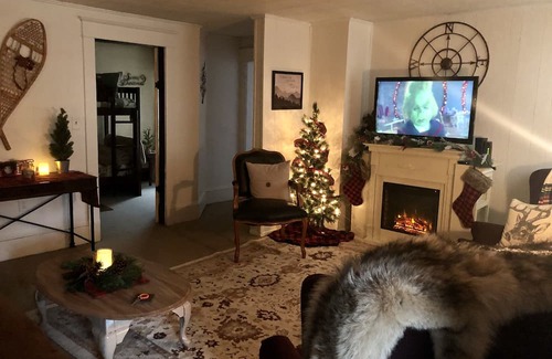 Built in 1900, unique, cozy, kid/pet friendly, adjacent to a cute park. Full kitchen,microwave,kuerig w/coffee, spices,3 bedrooms/sleeps 5 ,living roomw/fireplace, bathroom. 2 TVs, DVD player, dvds, games, pizza & pub, pharmacy, deli, coffee shops, gym, convenience stores, liquor store, pub within walking distance.Close to Whiteface Mountain,Lake Placid, Saranac Lake, Plattsburgh, hiking, sledding,skiing,skating rink & sleigh rides,workspace, Roku & WiFi.