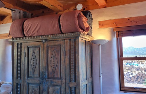 This is an authentic Adobe Home constructed with hand made Adobe blocks on site. Adobe homes are generally warmer in Winter and Cooler in Summer than traditional homes. This Adobe home was designed and built to use very little energy to keep it comfortable. Adobe homes have a unique character and charm.