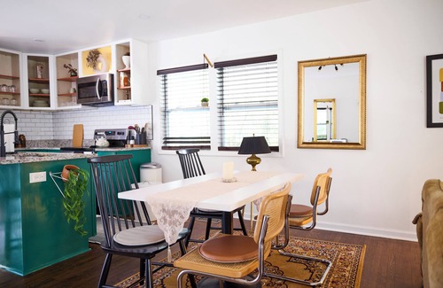 Enjoy creative and luxe decor within a curated space, comfy beds, and thoughtful amenities within a cheerful space in a quiet neighborhood. This is perfect for groups, couples, and travelers looking to visit and explore the wonders of Atlanta while lodging in style.