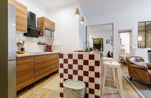 Welcome to your cozy Nice pied-à-terre, located just steps away from Garibaldi Square & the Coulée Verte Park, you will enjoy a prime location to explore the Azurean capital on foot.The apartment has been carefully decorated to offer you optimal comfort for your stay! It is located on the second floor without an elevator in a Nice residential building.The accommodation is arranged as follows:- You have a lovely colorful entrance for your first steps in the apartment with storage.- Then the space opens onto the spacious living area first composed of a fitted kitchen with refrigerator, freezer, induction hobs, Nespresso coffee maker, kettle, toaster, microwave, washing machine & everything necessary to prepare your meals!- The kitchen opens onto a living area consisting of a dining space with a table & chairs, a sofa, an armchair, a Smart TV & free WiFi.- To bring in more light, a glass partition separates the living room space from the bedroom, allowing the spaces to communicate with each other. The bedroom has a standard double bed size (140x190) and benefits from an adjoining bathroom with shower, sink unit & toilet.The apartment does not have air conditioning, but an air cooler is available on-site and is visible in the photos for the comfort of your summer stays.The accommodation is located 5 minutes walking from the Garibaldi line 1 tramway station, which allows you to reach notably the Old Nice or the shopping avenue Jean Médecin. You also have the Garibaldi/Le Château station of line 2 connecting the airport to the port of Nice, 8 minutes walking away.On foot, Old Nice is only 9 minutes away to explore the colorful streets of the Old Town. To reach the Promenade des Anglais on foot, count between 15 & 20 minutes!Welcome products are made available to facilitate your arrival, however we do not guarantee that they will be sufficient for the entire duration of your stay.