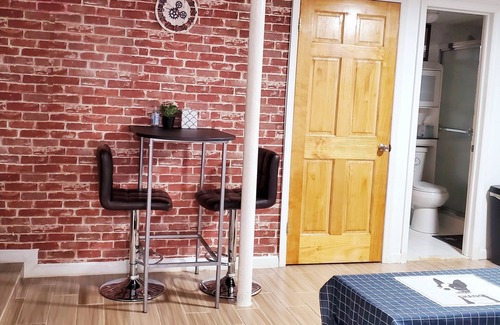 Renovated basement one bedroom with living room/ kitchen and full bathroom. Refrigerator, microwave, coffee marker, shampoo-conditioner are included. Great for friends, families, business travel.