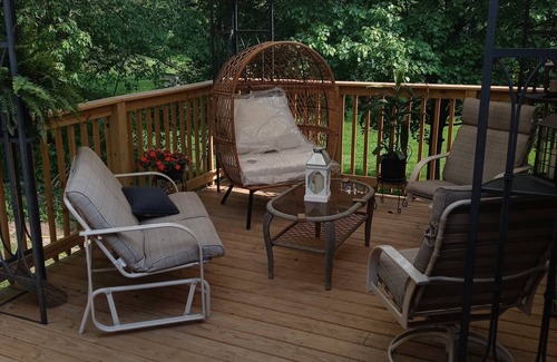 Your home away from home in Navarre with 1 bedroom. This superb cabin is the perfect retreat for guests seeking a cozy and relaxing getaway. This cool property offers all the comforts you need, including a washing machine, Blackstone grill with deck. The quaint bedroom provides a peaceful haven for a restful night's sleep. Close to canoeing, Amish country, sxs trails, bike trails, Ohio towpath Hall of Fame and Massillon