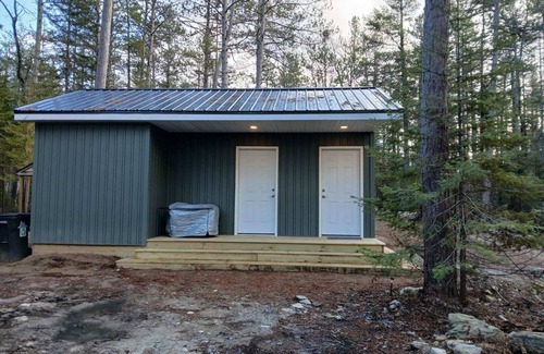 Escape to a cozy cabin on Drummond Island for an enjoyable retreat.This adorable 1-bedroom cabin features a comfortable queen bed, perfect for a relaxing night's sleep. With AC and heating, guests can stay comfortable year-round. Mini-fridge, coffee pot, and toaster. Modern bathhouse a short walk down the driveway (please note there is no water in the cabin).Bedding and towels provided for your stay. Private fire pit and peaceful surroundings make it a fantastic spot to unwind and recharge. We look forward to welcoming you to our place.