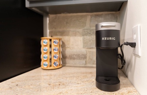 Remote workers are covered at the Cozy Caramel with a 47" L-shaped desk and 24" computer monitor. There is also a full-sized washer/dryer located in the sunroom with detergent provided.