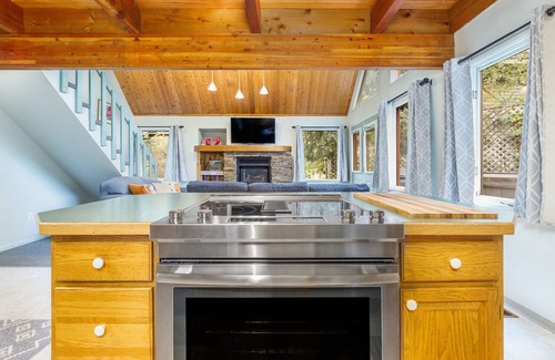 Ideal for a large family getaway, this rental offers free WiFi to make it easy to plan out your days, a warming gas fireplace, private washer/dryer, and a soothing four-person hot tub.