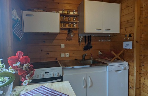 This charming, comfortable, and well-equipped chalet offers a pleasant setting with unobstructed views of the mountains and forests. In winter, you'll enjoy relaxing by the fireplace, and in warmer weather, you'll enjoy the outdoor area for your barbecues. A covered carport is available. Located 200 meters from the village, you can walk to pick up fresh bread. The town of St-Dié is 8 km away, and Gérardmer, with its lake and ski resort, is 20 km away. Numerous activities await you in this region, close to Alsace. Detached chalet. Pavagotcha. Ground floor and first floor: 3 bedrooms (2 double beds, 2 single beds, baby bed). Mezzanine. Living room opening onto a kitchenette, fireplace insert. Bathroom with shower. Toilet. Electric heating. Balcony. Covered carport. Terrace. Land. All charges included. The fireplace heats the entire chalet. Wood is provided for reasonable consumption; please refill the kindling for lighting; there are electric heaters as backup.