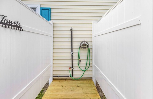 Perks include: high quality coastal style furniture, comfortable queen bed and 2 twins, linens and towels provided, outdoor shower and beach chairs! Fully equipped kitchen, coffee maker, keurig, washer/dryer and private parking for two vehicles.