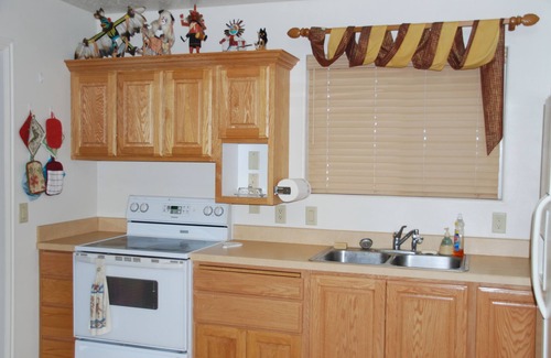 This single bedroom apartment has a private entrance, a queen size bed in the bedroom, a hide-a-bed in the living room, a bathroom with spacious shower with towels and bedding included. Fully equipped kitchen. Satellite TV. Washer and dryer. Wireless Internet. Located in a quiet neighborhood in a Cul-de-sac with very little traffic. Off street parking. Beautifully decorated in Southwest decor. Handicapped accessible.