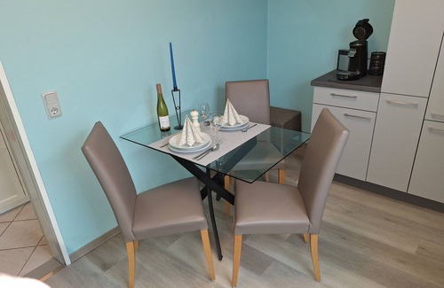 In the kitchen up to 4 people can sit comfortably at the table. In the daylight bath you have the choice between shower and bathtub. Terry towels and bathrobes are provided.