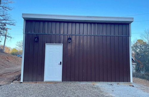 Escape to our cozy cottage nestled in the charming town of Winslow, just 20 minutes from Devil's Den State Park. This unassuming metal house may look modest on the outside, but it surprises guests with a beautifully designed interior. Thoughtfully crafted to maximize its 400 sq ft, it features a comfortable bedroom, a full bath, a welcoming living area, and a fully equipped kitchen.
