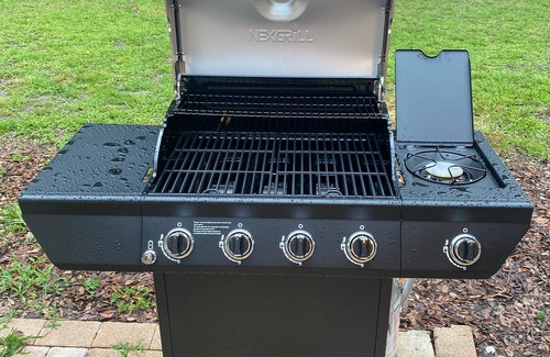 Enjoy the fire pit and grill, and feast outside on the picnic tables.