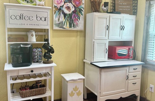 Escape to this cozy grain bin silo in Santa Fe, Tennessee. It is located about 30 miles south of Nashville, 15 minutes to Leipers Fork, 10 minutes to Columbia and 30 minutes to Franklin. This cozy 1-bedroom hideaway is a converted grain bin, featuring a corn epoxy floor and vintage decor. A fire pit and grill are outside, where you can watch some of the farm animals graze in the field.