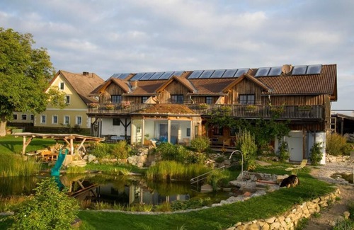 The apartment is 40 square meters and is ideal for up to 2 people. The bedroom has a double bed (1.80x2m). The kitchen-living room consists of a kitchenette, a dining table and TV. The kitchenette is fully equipped with a fridge, dishwasher, microwave, electric stove, kettle and coffee machine. The bathroom with shower and hairdryer completes the overall picture. The toilet is separate. A highlight is the large balcony with a view of the Ybbstal Alps. Towels and bed linen are provided. Parking free of charge. In the garden there is a swimming pond with a slide. You can get to know many different animal species, from the farm cats to the Benni domestic dog to many farm animals such as chickens, sheep or cows. The hosts offer a whole range of home-made organic products to help you regain your strength after many interesting days.