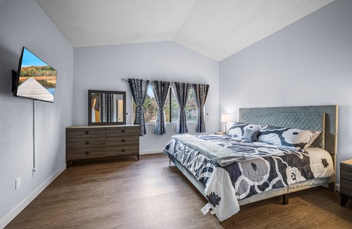 ❤️Bedroom 1-Upstairs (Master): Relax in the plush king bed and enjoy the convenience of a dresser, two nightstands, and a flat-screen TV. The en-suite bathroom ensures privacy and luxury.
