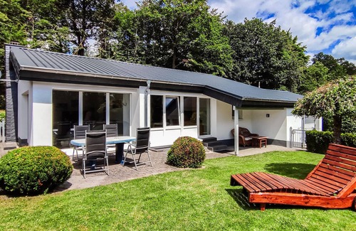 The outdoor area has been beautifully designed and laid out for the new season. The neighbouring forest is home to various animal species, which can even be observed from the bungalow. The property is fenced in with hedges and there are two integrated garden gates. This allows children and dogs to run free. An American BBQ grill is available on the spacious terrace - firewood is provided on site. There is a second terrace. Our guests can relax in the covered lounge, protected from the weather, and sit outside even in rainy weather. For your safety, several smoke detectors and a CO gas detector are installed in the holiday bungalow.