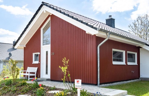 The modern wooden house impresses with its Scandinavian style and offers enough space for 4 adults and a small child under the age of 4. Thanks to the open roof ridge, you can enjoy a pleasant feeling of space and light-flooded rooms. The maritime furnishings in light colours contribute to the cosy atmosphere. The first bedroom is furnished with a double bed, while the second bedroom has two single beds. Both bedroom windows are fitted with mosquito screens. The kitchen is located in a separate room without a door and is equipped to a high standard, including an induction hob. The large freezer offers sufficient space for cooling the fish you have caught. An iron and ironing board as well as a hairdryer are available in the house. There is an 11 KW charging station for your electric car in the car park.
