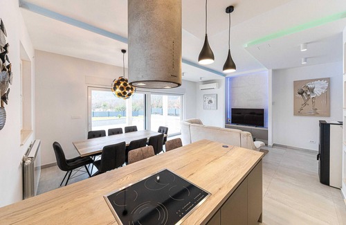 The exclusive house welcomes you in a good location and enchants with its stylish interior. Relax in comfortable ambience, here bright rooms meet a modern interior and contemporary design, just the right setting for vacation relaxation. After a wonderful day of vacation, perhaps spent on an excursion, the comfortable sofa invites you to sit together comfortably for a long time, review your experiences and already make plans for the next day.