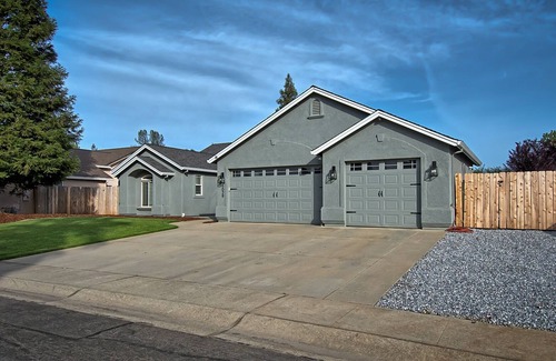 Beautifully updated home with a split floor plan. Home is located near both I-5 Freeway and Hwy 44 for ease of getting where you need to go. This cozy home has an open floor plan and is updated throughout. Full Kitchen featuring stainless steal appliances, gas stove top, step in pantry, and breakfast bar. Large master bedroom with french doors to the backyard, 2 sinks and a walk in closet with stall shower. 2 additional bedrooms with guest bath plus an office. Make yourself at home with TV and WiFi.