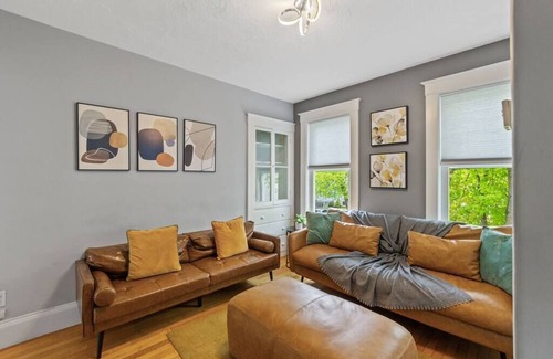 Our renovated house is nestled on a safe tree-lined, in the PERFECT Waltham location around a nice neighborhood. Private 1200 sq/ft 4Bed, memory foam mattress, fast streaming latest tech TV 65" with a 1,000Mb speed (no cable TV), kitchen is carefully stocked with everything you may need. Sleeps 11 comfortably. Parking included. Short walk to Moody St and amazing restaurants. Very close to Brandeis & Bentley.