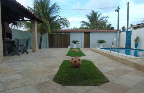 House of 03 rooms all with air conditioning, 02 suites, 03 double beds and 01 Queen, 02 single and 01 double mattresses, Terrace, pool, recreation area with barbecue, living room, kitchen, 01 fridge, 01 freezer, stove, microwave, blender, sandwich maker, electric water cooler, crockery, cutlery and pans, wc, external wc, garage for 02 cars, service area, 03 fans, LCD TV and DVD, sofa, table with 06 chairs.