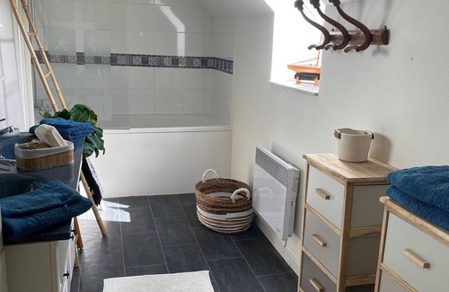 Upstairs: 1 bedroom with 1 140 cm bed and 1 other small bedroom with 1 90 cm bed and 1 baby bed. Shower room with double sink, bathtub with shower screen. 1 independent toilet.