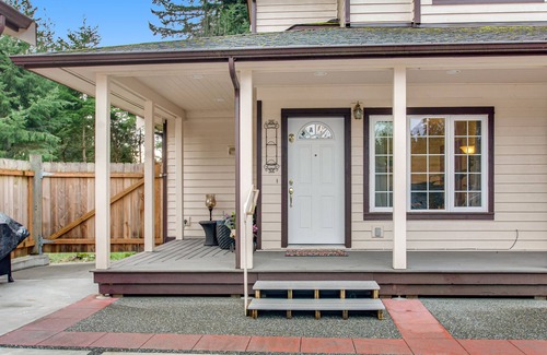 This cozy, one-level condo has everything you need for an island getaway. With a great central location on Whidbey Island, you're close to wineries, hiking, biking, cute shops, and state parks. Inside the condo you'll find cozy hardwood floors throughout the main living area. The living room features a comfortable recliner–perfect for kicking back and watching your favorite streaming shows on the flatscreen after a day out exploring. The fully-equipped kitchen with plenty of counter space means you can prep snacks for the day or a full meal, and the living space's open plan means the cook won't feel left out. When it's time to eat, the dining area comfortably seats four. After dinner, step out onto your lovely front deck and watch the stars rise over the island.