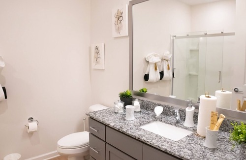 This one-bedroom, one-bath fully furnished unit, exudes modern elegance. The stylish kitchen features sleek granite surfaces, perfect for meal preparation and dining. The unit includes a comfortable bedroom, a well-appointed bathroom, and a spacious living area. Whether you're here for a short-term stay or an extended visit, you'll enjoy the convenience of this fully furnished space with upscale touches, making your stay in Concord, NC, both comfortable and aesthetically pleasing.