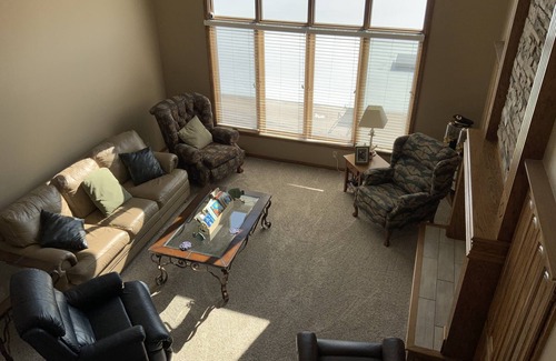 Aloha! Join us as our guests in our cozy lake home at Hawaiian Village in Papillion, Nebraska, only minutes from downtown Omaha and the CHI Health Center. Yes, Hawaii in Omaha, Nebraska! Our 1-1/2 story lake home with furnished walkout basement provides 5 bedrooms, 4 bathrooms, see thru fireplace and approximately 3,000 sf of paradise lake living space. The 5 bedrooms include 2 king beds, 2 queen beds and 4 single beds providing sleeping in beds space for 12 people. A full bathroom is located on each floor with a powder room off the kitchen and dining room. There is a laundry room with washer/dryer on the main floor. A fully furnished kitchen provides dining for 12-14 people. The kitchen is highlighted with granite countertops, LG stainless steel appliances including an electric stove, microwave, dishwasher and 25 cu French door refrigerator, Keurig coffee maker, Ninja air fryer and blender. The finished basement features Samsung appliances in a kitchen/wet bar area with a second refrigerator and eating area. There is also a theater room with a 85 inch Sony smart TV. The exterior features 110 feet of water front and a sandy beach with spectacular views. For your enjoyment there is a 15x30 foot maintenance free deck with table/chairs, a 14x24 foot concrete patio with Char-broil grille, outdoor furniture and a large paver area with fire pit and wooden Adirondack chairs for your comfort when making S’mores. Mahalo!