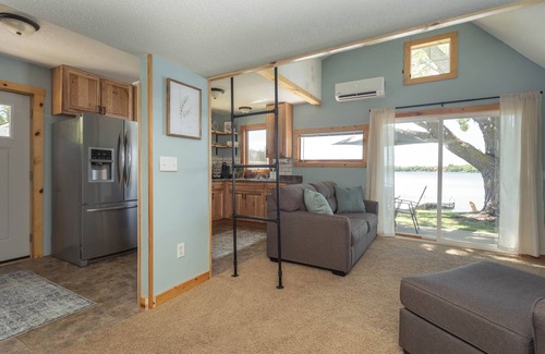 This room features windows and a sliding door facing the lake and overlooking the patio and fire pit. There is a cozy sleeper sofa that becomes a Full size sleeping space. A 43” Smart TV with Roku, paired with our high speed WiFi internet allows you to log in to your Netflix, Hulu, Disney Plus or any other streaming service you have access.