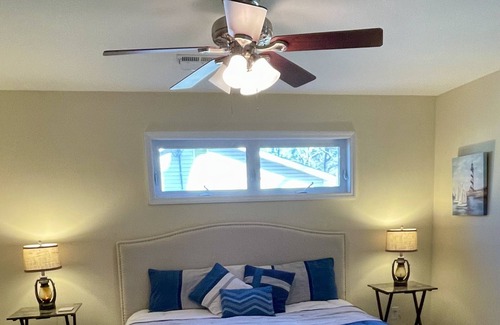 Our peaceful little cottage offers a variety of nooks and crannies to enjoy a nice cup of coffee, read a book, or stream a movie on big screen. Rest in the quiet back yard, or arrange to rent our golf cart and drive to one of two neighborhood beaches, or spend some time sitting on the dock of the Chesapeake Bay (the neighbor hood has three of them!)