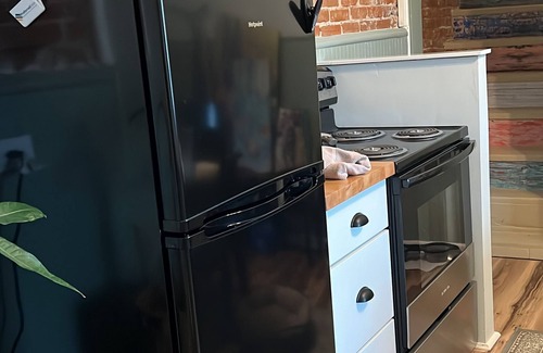 Welcome to your dream loft in historic Frenchtown! This renovated 1860 loft combines vintage charm with modern conveniences, featuring exposed brick walls, new flooring, and fresh paint. The kitchen includes new appliances and countertop, while the bathroom offers tiles and a glass half shower door. On 2nd Street is steps away from bars, restaurants, and famous Katy trail for and w/ walking distance to Main St in St Charles. MO. Don't miss this chance to live in a beautiful updated space.