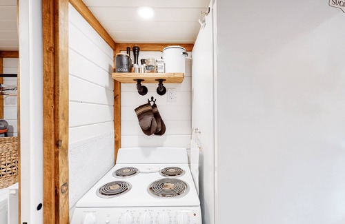 You'll love being located among the trees and a short drive to Christina Lake when you book this TinyHouse on Wheels (THOW)! This retreat is perfect for solo travelers, couples, and groups of up to three people. The interior features contemporary decor and appliances, a cute loft design, a washer/dryer, a well-appointed galley-style kitchen with all the essentials, a full bathroom with a standalone shower, a sofa bed on the first loft, and a spacious bed on the second loft. Outside, the spacious deck with patio seating is perfect for meals al fresco (seats up to six) and you will also find a relaxing hammock and an outdoor shower.