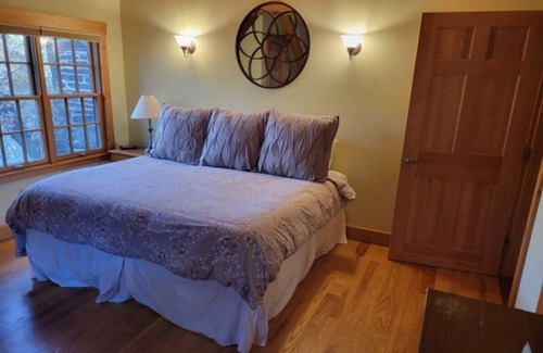 Nestled in Charlemont, MA, our home offers mountain views of Berkshire East Ski Resort. With 6 bedrooms, a deck, and fireplaces, it's perfect for entertaining. Explore Shelburne Falls and Buckland for dining and crafts. Enjoy guided rafting with Zoar Outdoor, fish in the Deerfield River, check out Thunder Mountain Bike Park, MASS MoCA and visit North Adams for dining. Built in 2005, our timber frame home is ideal for nature lovers. . Bedrooms feature room-darkening blinds.