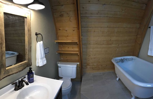 Nestled amidst a serene stand of trees, Pine Mountain Lodge offers unparalleled privacy. Relax in the 7-person hot tub on chilly evenings or unwind on the wrap-around deck's porch furniture. Stay seamlessly connected with our high-speed internet connection, ensuring you're always in touch with the world.