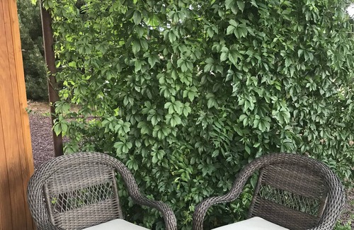 This tiny home has everything you need, including a beautiful view out of the sliding glass doors. There are two new cabins on this property, each with a king bed and plush bedding. This cabin has a leather loveseat, 55" Roku TV (Netflix, Disney+, ESPN+) a two seated bar, microwave, refrigerator, full sink, Keurig coffee maker, toaster, and a bath/shower combination. We've added custom features like a copper vessel sink and branded bar. Please check out our other vacation property # 4179446 to see great reviews.