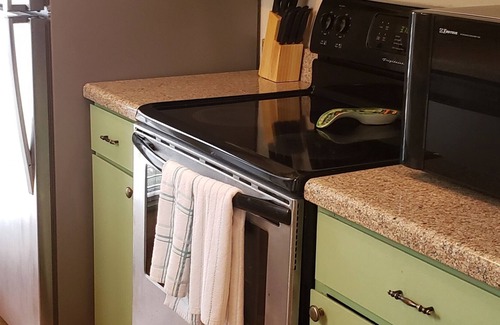 The kitchen has all kind of cooking ware to prepare your favorite dish.