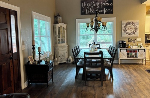 Whether it's a hot summer day by the pool or a cozy winter day by the fireplace you will enjoy your mountain stay! The sunsets overlooking the pool area will take your breath way! On many summer nights the sky is definitely God's canvas, his art is amazing. The gourmet kitchen is fully stocked. You have pretty much all the things needed! There are double ovens to help speed up your cooking time. If you happened to be a coffee lover like me you will enjoy the fully stocked coffee bar equipped with a variety of coffee's, green tea, hot chocolate and all the fixings. You may enjoy having your coffee while sitting on the large front deck while listening to Dave's creek babbling in the distance! Don't be surprised if you see several different wild life species roaming on the property. Such as Bob Cats, Bears, Deer, Coyotes, Rabbits, Squirrels, etc! Mostly likely you will hear an Owl at night Hooting from the trees. And if you are lucky enough to stay here at Moonlight Crest on a full moon night you will be sure to the know how and why we named our home Moonlight Crest! The way the light from the Moon hits the ridge and lights it up on a full moon night is absolutely magical! If you want to venture out away from home you will have several choices. Locals enjoy tubing down The Little Tennessee River, Rafting down the Nantahala Gorge, Boating on the choice of several lakes surrounding the area such as Nantahala, Chatuge, Fontana, Glenville, and Bear Lake. Hiking on the Bartam Trail, Pickens Nose, Sunset and Sunrise Rock, etc. We are approximately 30.4 miles from the Cherokee Casino and Cherokee Reservation, 17.5 miles from Dry Fall in Highlands NC, 74 miles from Pigeon Forge, Dollywood and Gatlinburg TN, 68 miles fromBiltmore House in Asheville NC, 129 miles to Atlanta GA. **Absolutely No Smoking in the house! **