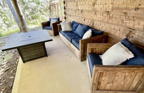 4 wheel drive is required to travel the gravel road to the cabin. A mountaintop retreat awaits you at Bear's Creekside Cabin. Enjoy the Sunrise or Sunset porch, relax, and enjoy the seasonal views by propane fireplace or build a fire pit. Meander through the forest to the babbling creek. Cozy up on the couch by the fireplace. Relax Close to shopping, restaurants, hiking, overlooks and waterfalls, 10 minutes to Downtown Clayton. Short drive to the Highlands, zip lining and adventure all around.